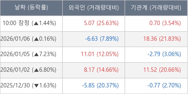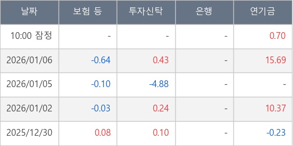 [표] 주요 기관별 순매매량 (단위 만주)