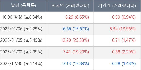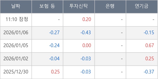 [표] 주요 기관별 순매매량 (단위 만주)