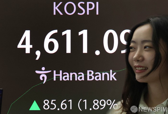 [서울=뉴스핌] 윤채영 기자 = 코스피 지수가 7일 장중 4600선을 돌파하며 역대 최고치를 경신하자 증권가에서는 '5000선 돌파'가 예상보다 빠르게 현실화할 수 있다는 전망이 나온다. 주요 증권사들도 잇달아 올해 코스피 전망 밴드 상향 조정에 나섰다.