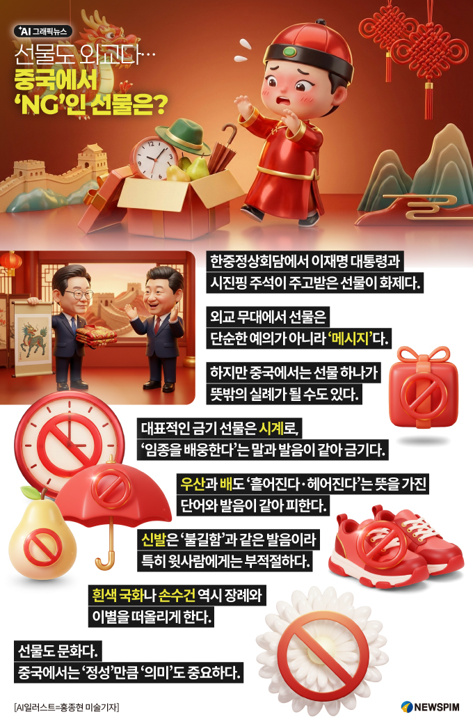 [AI그래픽뉴스] 선물도 외교다… 중국에서 'NG'인 선물은?
