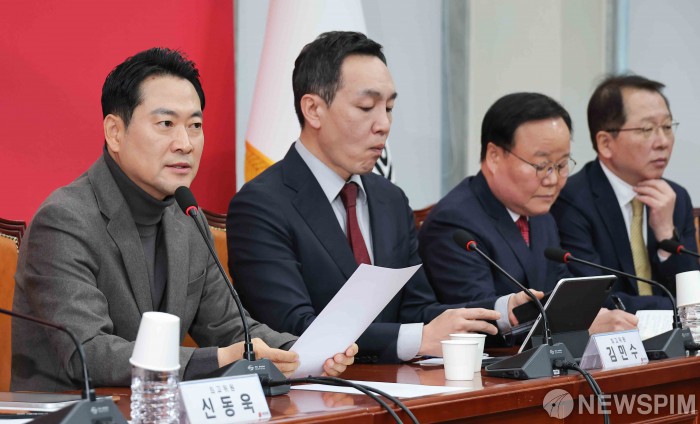 [서울=뉴스핌] 윤창빈 기자 = 장동혁 국민의힘 대표가 8일 서울 여의도 국회에서 열린 최고위원회의에서 모두발언을 하고 있다. 2026.01.08 pangbin@newspim.com
