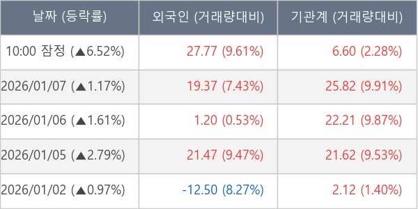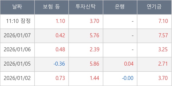 [표] 주요 기관별 순매매량 (단위 만주)
