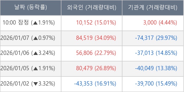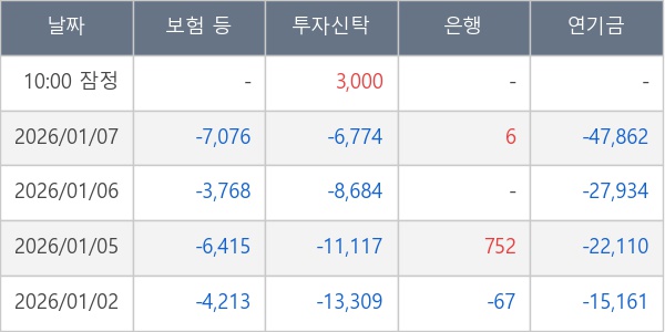 [표] 주요 기관별 순매매량 (단위 주)