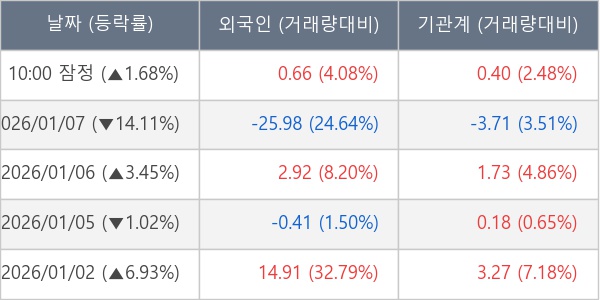 [표] 외국인ㆍ기관 순매매량 (단위 만주)