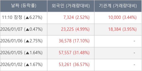 [표] 주요 기관별 순매매량 (단위 주)