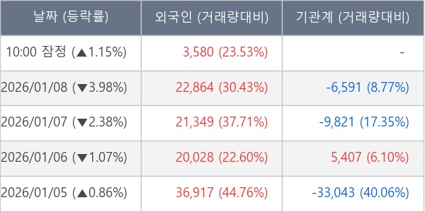 [표] 외국인ㆍ기관 순매매량 (단위 주)