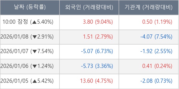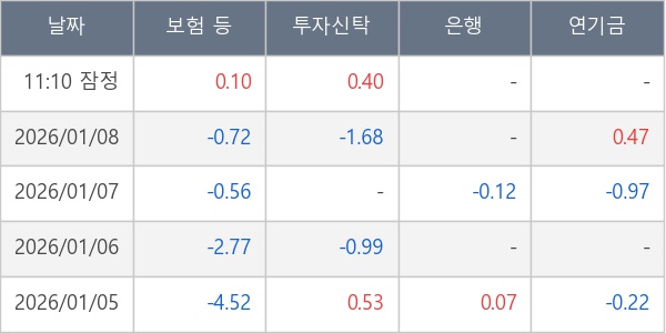 [표] 주요 기관별 순매매량 (단위 만주)