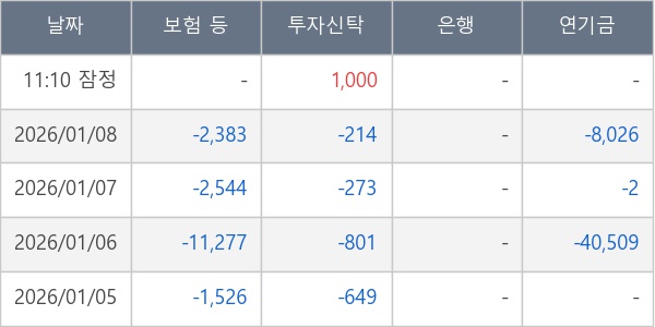 [표] 주요 기관별 순매매량 (단위 주)