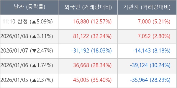 [표] 주요 기관별 순매매량 (단위 주)