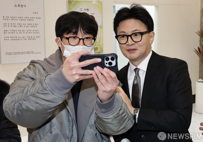 지지자와 기념촬영하는 한동훈 전 국민의힘 대표