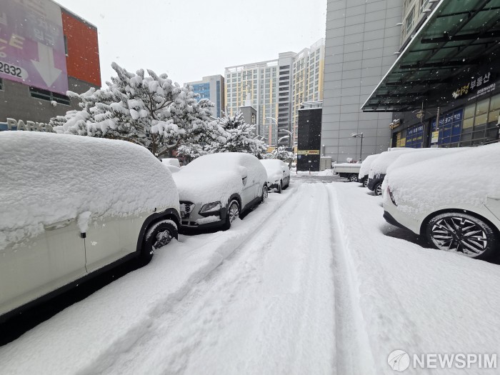 [무안=뉴스핌] 조은정 기자 = 광주와 전남 곳곳에 대설주의보와 한파주의보가 발효된 11일 오전 전남 무안군 삼향읍 한 상가 주차장에 많은 눈이 쌓여 있다. 기상청은 이날 오전까지 광주와 전남에 5~10㎝, 전남 서부 지역은 최대 15㎝ 이상의 눈이 내릴 것으로 예보했다. 2026.01.11 ej7648@newspim.com