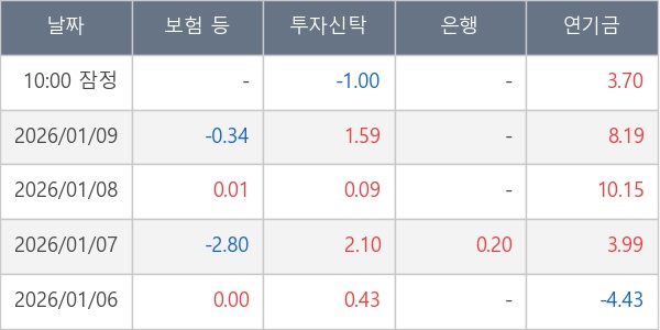 [표] 주요 기관별 순매매량 (단위 만주)
