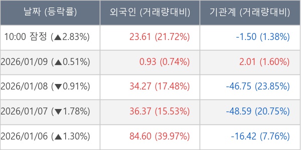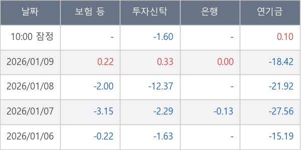 [표] 주요 기관별 순매매량 (단위 만주)
