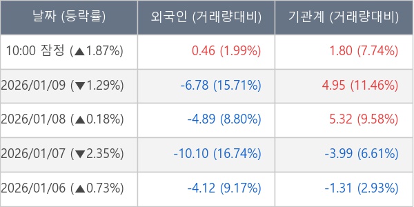 [표] 외국인ㆍ기관 순매매량 (단위 만주)