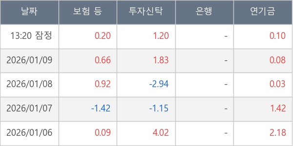 [표] 주요 기관별 순매매량 (단위 만주)