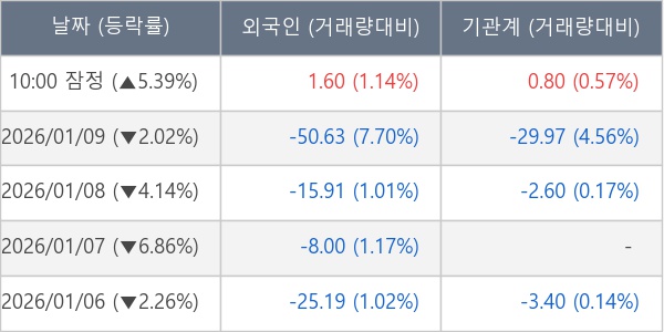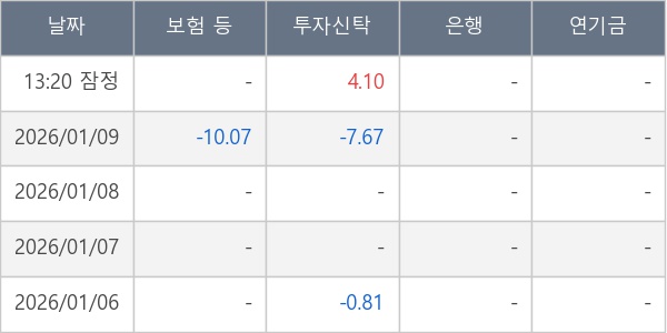 [표] 주요 기관별 순매매량 (단위 만주)