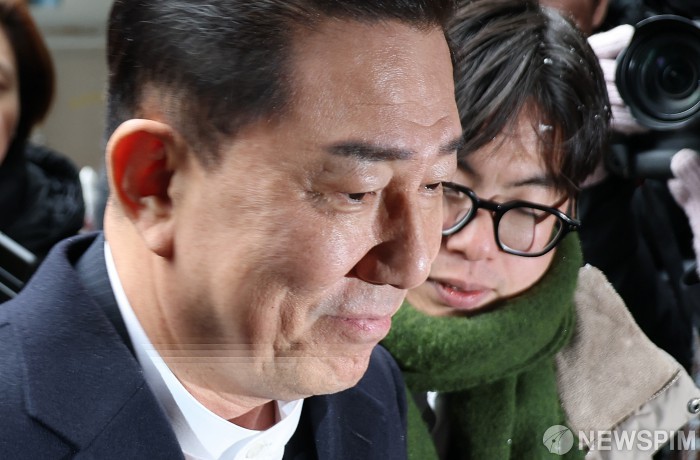 [서울=뉴스핌] 정일구 기자 = 김병기 전 더불어민주당 원내대표가 12일 오후 서울 여의도 중앙당사에서 열린 더불어민주당 윤리심판원에 출석하고 있다. 2026.01.12 mironj19@newspim.com