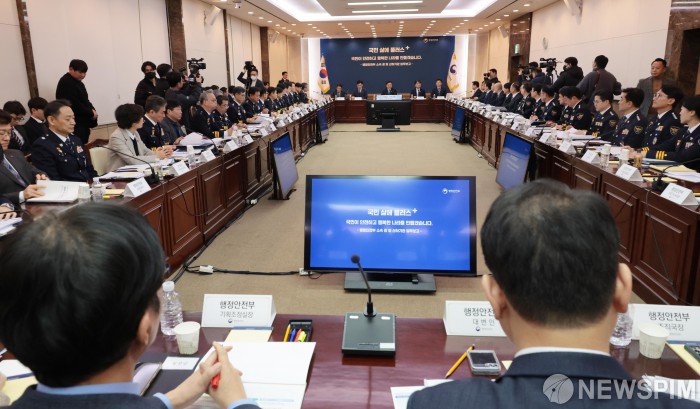 [서울=뉴스핌] 이길동 기자 =윤호중 행정안전부 장관이 12일 서울 종로구 정부서울청사에서 열린 경찰청,산하기관 업무보고에서 모두 발언을 하고 있다. 2026.01.12 gdlee@newspim.com