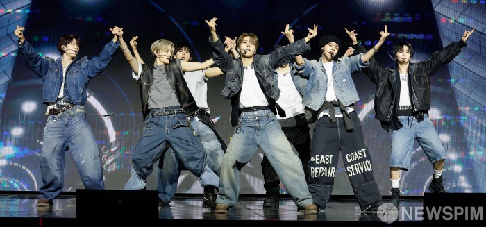 [서울=뉴스핌] 류기찬 기자 = 신인 보이그룹 알파드라이브원이 12일 오후 서울 용산구 블루스퀘어 SOL트래블홀에서 열린 데뷔 기념 쇼케이스에서 선공개곡 ‘포뮬러(FORMULA)’ 무대를 선보이고 있다. 데뷔 앨범 유포리아(EUPHORIA)는 각자의 방식으로 꿈을 향해 나아가던 여덟 멤버의 여정이 하나의 팀으로 집약된 결과물을 표현한 곡이다. 2026.01.12 ryuchan0925@newspim.com