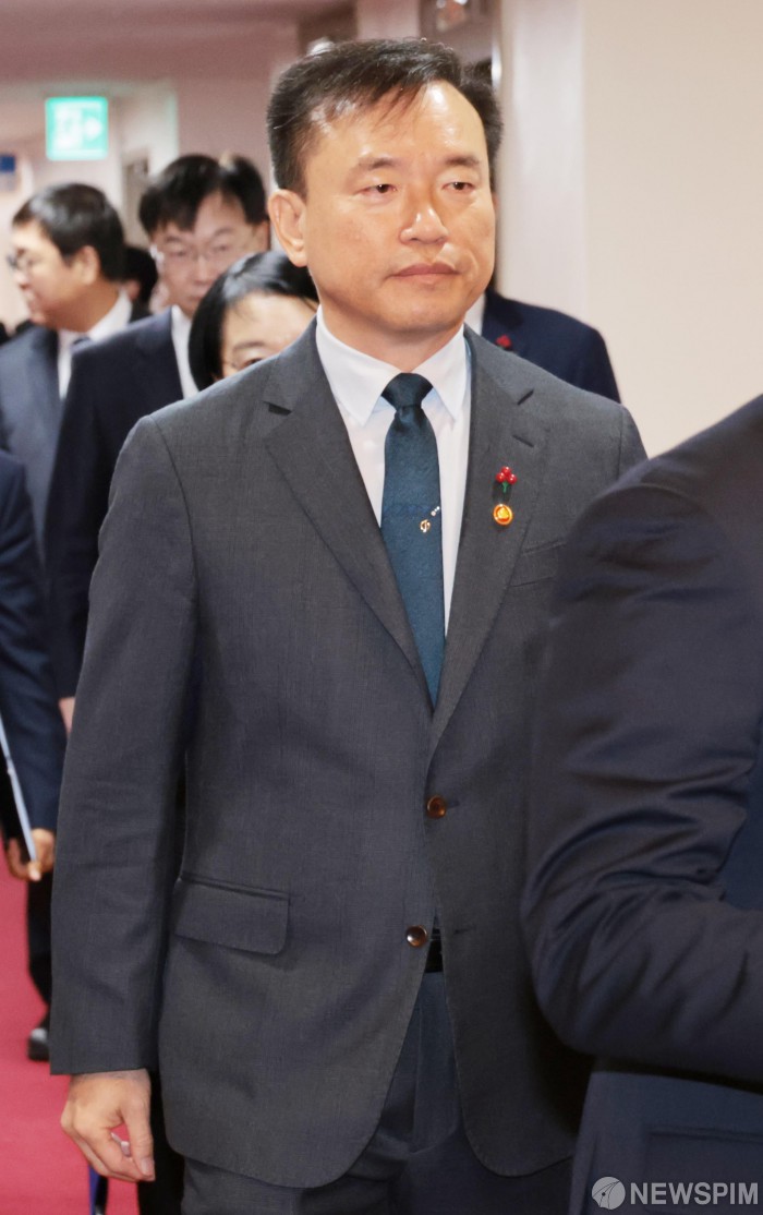 [서울=뉴스핌] 이길동 기자 = 감종철 방송미디어통신위원장이 13일 서울 종로구 정부서울청사에서 열린 국무회의에 참석하고 있다.2026.01.13 gdlee@newspim.com