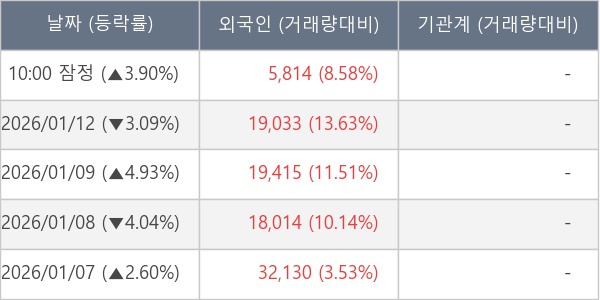 [표] 외국인ㆍ기관 순매매량 (단위 주)