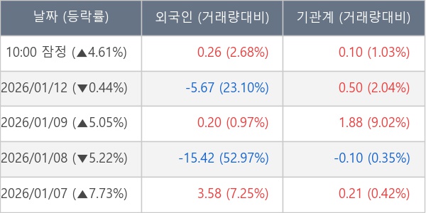 [장중수급포착] 현대차우, 외국인/기관 동시 순매수… 주가 +4.61%