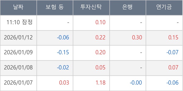 [표] 주요 기관별 순매매량 (단위 만주)