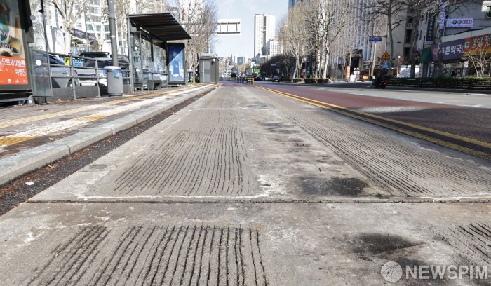 [서울=뉴스핌] 양윤모 기자 = 13일 서울시버스 노사의 임금협상 결렬로 노조가 총파업에 돌입하며 버스가 운행을 멈춘 가운데, 마포구의 한 버스정류장에 정적만 흐르고 있다. 서울시내버스는 64개사 394개 노선에서 7천382대가 운행 중이다. 2026.01.13 yym58@newspim.com