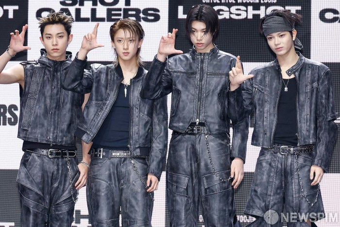 [서울=뉴스핌] 류기찬 기자 = 신인 보이그룹 롱샷 멤버들이 13일 오후 서울 영등포구 명화라이브홀에서 열린 데뷔 기념 쇼케이스에서 포토타임을 가지고 있다. 2026.01.13 ryuchan0925@newspim.com