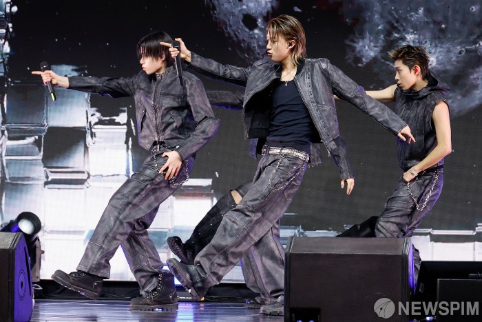 [서울=뉴스핌] 류기찬 기자 = 신인 보이그룹 롱샷 멤버들이 13일 오후 서울 영등포구 명화라이브홀에서 열린 데뷔 기념 쇼케이스에서 타이틀곡 ‘문워킨(Moonwalkin)' 무대를 선보이고 있다. 데뷔 앨범인 샷 콜러스(SHOT CALLERS)는 그들이 지향하는 태도와 에너지에서 출발하여, 힙합과 R&B, 팝 등 여러 사운드를 자유롭게 표현한 앨범이다. 2026.01.13 ryuchan0925@newspim.com