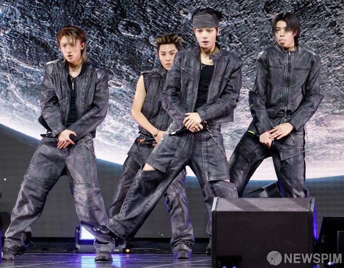 [서울=뉴스핌] 류기찬 기자 = 신인 보이그룹 롱샷 멤버들이 13일 오후 서울 영등포구 명화라이브홀에서 열린 데뷔 기념 쇼케이스에서 타이틀곡 ‘문워킨(Moonwalkin)' 무대를 선보이고 있다. 데뷔 앨범인 샷 콜러스(SHOT CALLERS)는 그들이 지향하는 태도와 에너지에서 출발하여, 힙합과 R&B, 팝 등 여러 사운드를 자유롭게 표현한 앨범이다. 2026.01.13 ryuchan0925@newspim.com