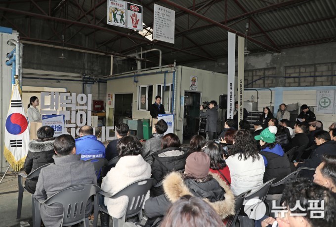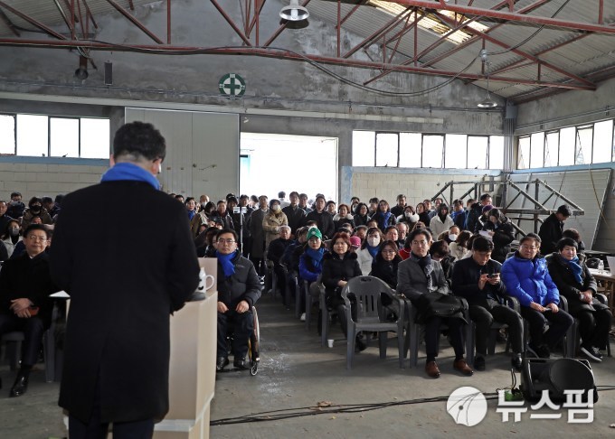 이날 한파주의보로 인한 쌀쌀한 날씨임에도 허태정 전 대전시장을 비롯해 김종천 전 대전시의장, 박효서·김기흥 대덕구의원 등 지방선거 출마 예정자들과 지역 인사, 대덕구민 등 400명에 가까운 인파가 출마 회견이 열린 폐공장을 찾아  열기를 올렸다.