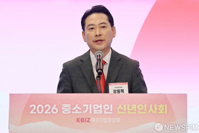 [서울=뉴스핌] 정일구 기자 = 장동혁 국민의힘 대표가 13일 오후 서울 영등포구 중소기업중앙회에서 열린 2026 중소기업인 신년인사회에서 새해 인사말을 하고 있다. 2026.01.13 mironj19@newspim.com