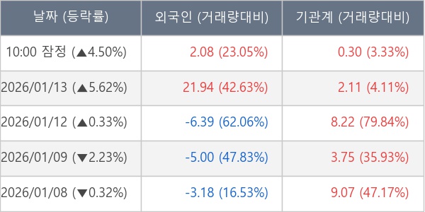 [표] 주요 기관별 순매매량 (단위 만주)