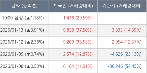 [표] 외국인ㆍ기관 순매매량 (단위 주)
