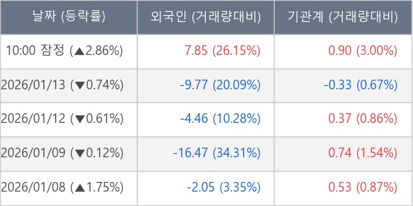 [장중수급포착] 원텍, 외국인/기관 동시 순매수… 주가 +2.86%