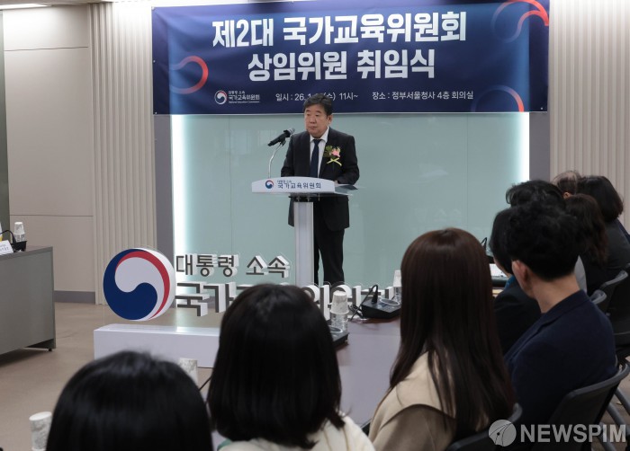 [서울=뉴스핌] 이길동 기자 =이광호 상임위원이 14일 서울 종로구 정부서울청사에서 열린 제2대 국가교육위원회 상임위원 취임식에서 취임사를 하고 있다. 2026.01.14 gdlee@newspim.com