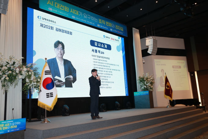KAIST 서용석 문술미래전략대학원 교수가 강연자로 나서 글로벌 기술·산업 변화와 AI 시대 기업 전략, 리더십 역할을 제시하며 참석자들의 호응을 얻었다.
