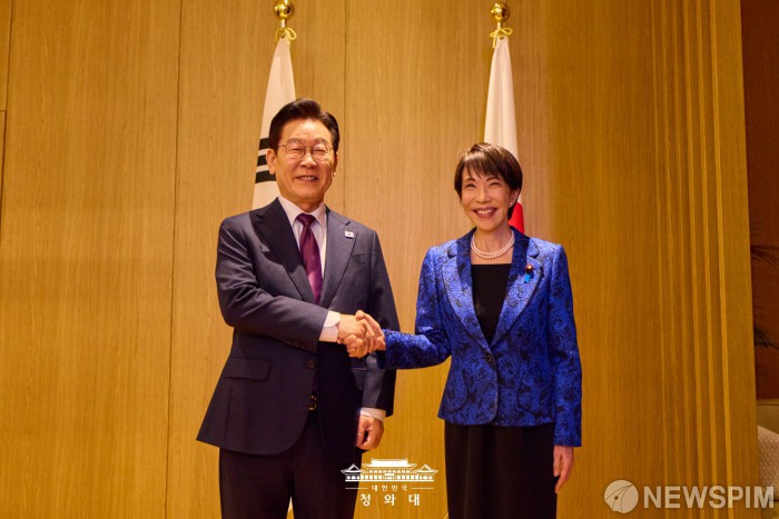 [서울=뉴스핌] 이재명 대통령이 지난 13일 일본 나라현에서 다카이치 총리와 소인수회담을 앞두고 악수를 하고 있다. [사진=청와대] 2026.01.14 photo@newspim.com
