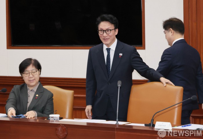 [서울=뉴스핌] 이길동 기자 = 김민석 국무총리가 15일 서울 종로구 정부서울청사에서 열린 국가정책조정회의에 참석하고 있다. 2026.01.15 gdlee@newspim.com