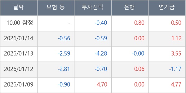 [표] 주요 기관별 순매매량 (단위 만주)