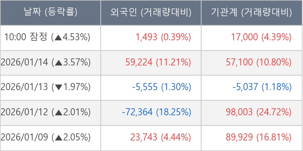 [장중수급포착] 원익QnC, 외국인/기관 동시 순매수… 주가 +4.53%
