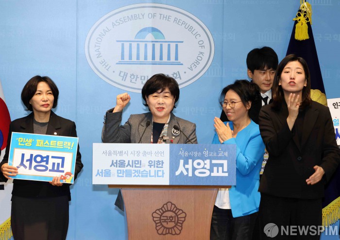 [서울=뉴스핌] 윤창빈 기자 = 서영교 더불어민주당 의원이 15일 서울 여의도 국회에서 6.3 지방선거 서울시장 출마 선언을 하고 있다. 2026.01.15 pangbin@newspim.com