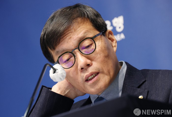 [서울=뉴스핌] 정일구 기자 = 이창용 한국은행 총재가 15일 오전 서울 중구 한국은행에서 열린 통화정책방향 기자간담회에서 취재진 질문에 답하고 있다. 한은 금융통화위원회는 이날 새해 첫 회의에서 기준금리를 연 2.50%로 5연속 동결했다. 2026.01.15 mironj19@newspim.com