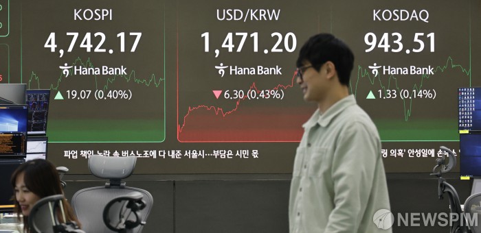 [서울=뉴스핌] 양윤모 기자 = 15일 오후 코스피가 전장 종가보다 19.07 포인트(0.40%) 상승하며 4742.17로, 코스닥은 1.33 포인트(0.14%) 상승한 943.51로 거래되는 가운데, 서울 중구 하나은행 딜링룸에서 직원들이 업무를 보고 있다. 서울외환시장에서 달러/원 환율은 전장 대비 6.30원 하락한 1471.20원에 거래되고 있다. 2026.01.15 yym58@newspim.com