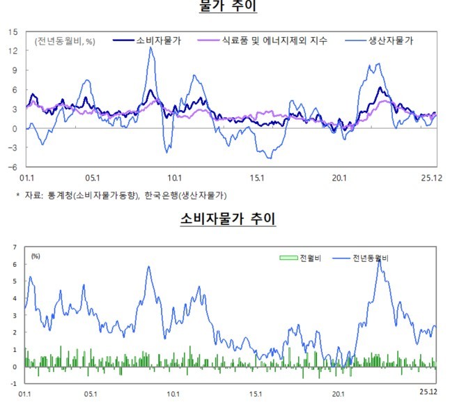 특히 석유류 물가는 전년동월비 6.1% 상승하며 오름세를 이어갔다. 원유가격 하락에도 불구하고 원화 약세로 석유류 물가가 오른 것으로 풀이된다. 농산물 및 석유류 제외 지수는 전년동월비 2.3%, 생활물가지수는 가공식품, 과실 등에서의 오름폭 축소 등으로 2.8% 상승했다.