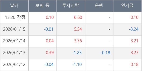 [표] 주요 기관별 순매매량 (단위 만주)