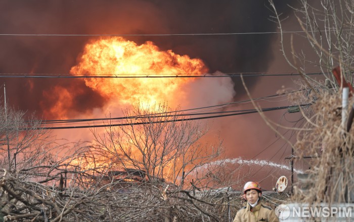 [서울=뉴스핌] 양윤모 기자 = 16일 오전 5시경 서울 강남구 개포동 구룡마을 4구역에서 화재가 발생해 소방관들이 진화를 하고 있다. 소방당국은 대응 1단계를 2단계로 격상하고 추가 인력을 투입 진화를 완료했다. 2026.01.16 yym58@newspim.com