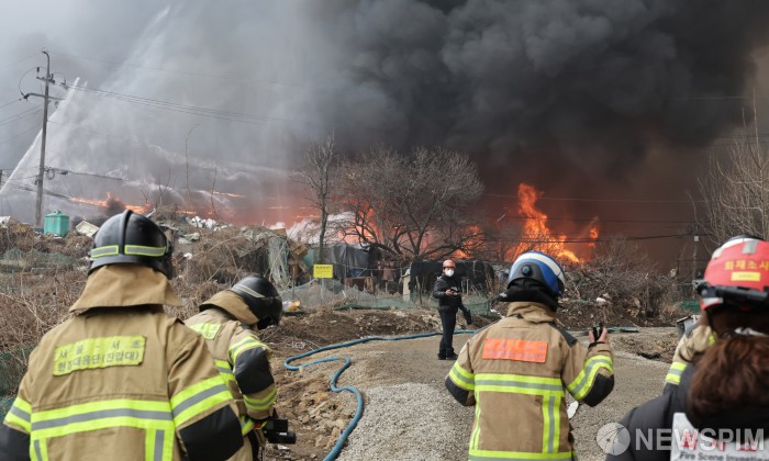 [서울=뉴스핌] 양윤모 기자 = 16일 오전 6시 27분경 서울 강남구 개포동 구룡마을 4구역에서 화재가 발생해 소방관들이 진화를 하고 있다. 소방당국은 대응 1단계를 2단계로 격상하고 추가 인력을 투입 진화를 완료했다. 2026.01.16 yym58@newspim.com