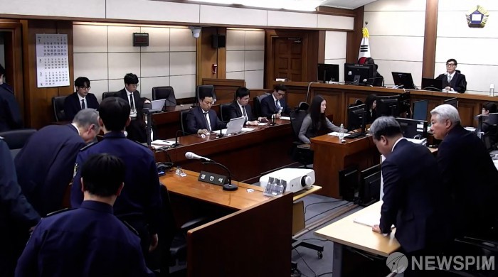 [서울=뉴스핌] 윤석열 전 대통령이 16일 서울 서초구 서울중앙지법에서 열린 체포방해 등 혐의 사건 1심 선고 공판을 마치고 퇴장하며 허리숙여 인사하고 있다. 백대현 부장판사는 윤 전 대통령에게 징역 5년을 선고했다. [사진=서울중앙지법] 2026.01.16 photo@newspim.com